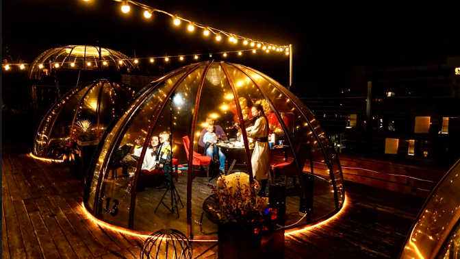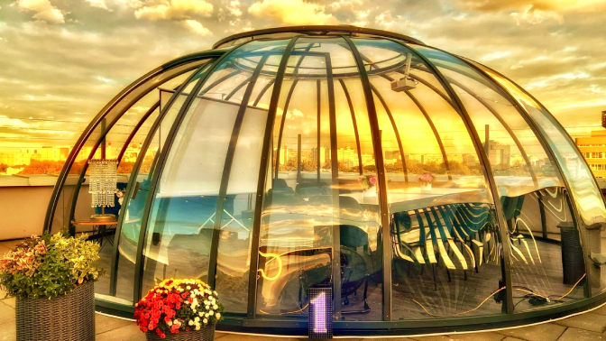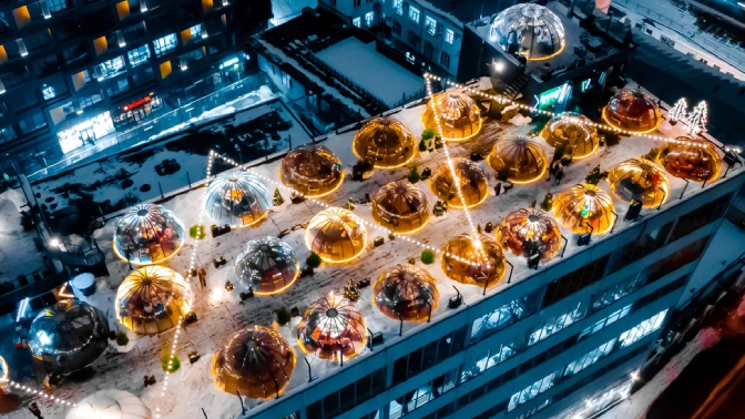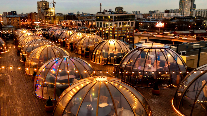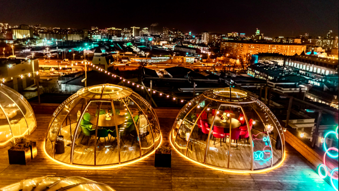 Что входит в стоимость и что вас ждет на крыше: — индивидуальные стеклянные купольные беседки с красивым панорамным видом на город;